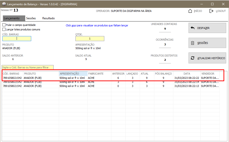 Sim, é possível utilizar essa ferramenta para auxiliar na contagem dos controlados/antimicrobianos. No entanto, é necessário finalizar o inventário na Anvisa para realizar o balanço, sendo assim não poderá efetuar vendas até que conclua o balanço e o novo inventário esteja aceito na Anvisa.