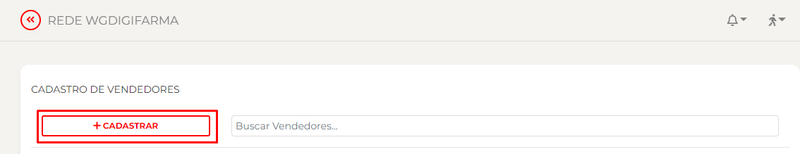 3. Será exibida a tela abaixo, clique em + CADASTRAR para adicionar novo vendedor: