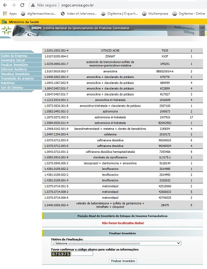 Antes de finalizar o inventário de controlados/antimicrobianos recomendamos que a Vigilância Sanitária da localidade seja comunicada desse processo.